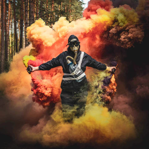 While the smoke itself is non-staining, close contact with the device or hot smoke can leave marks. We recommend using smoke bombs at a safe distance from people and surfaces.